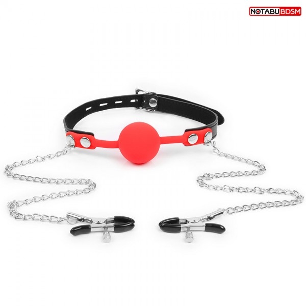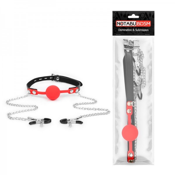 Кляп с зажимами на соски "Notabu" красный